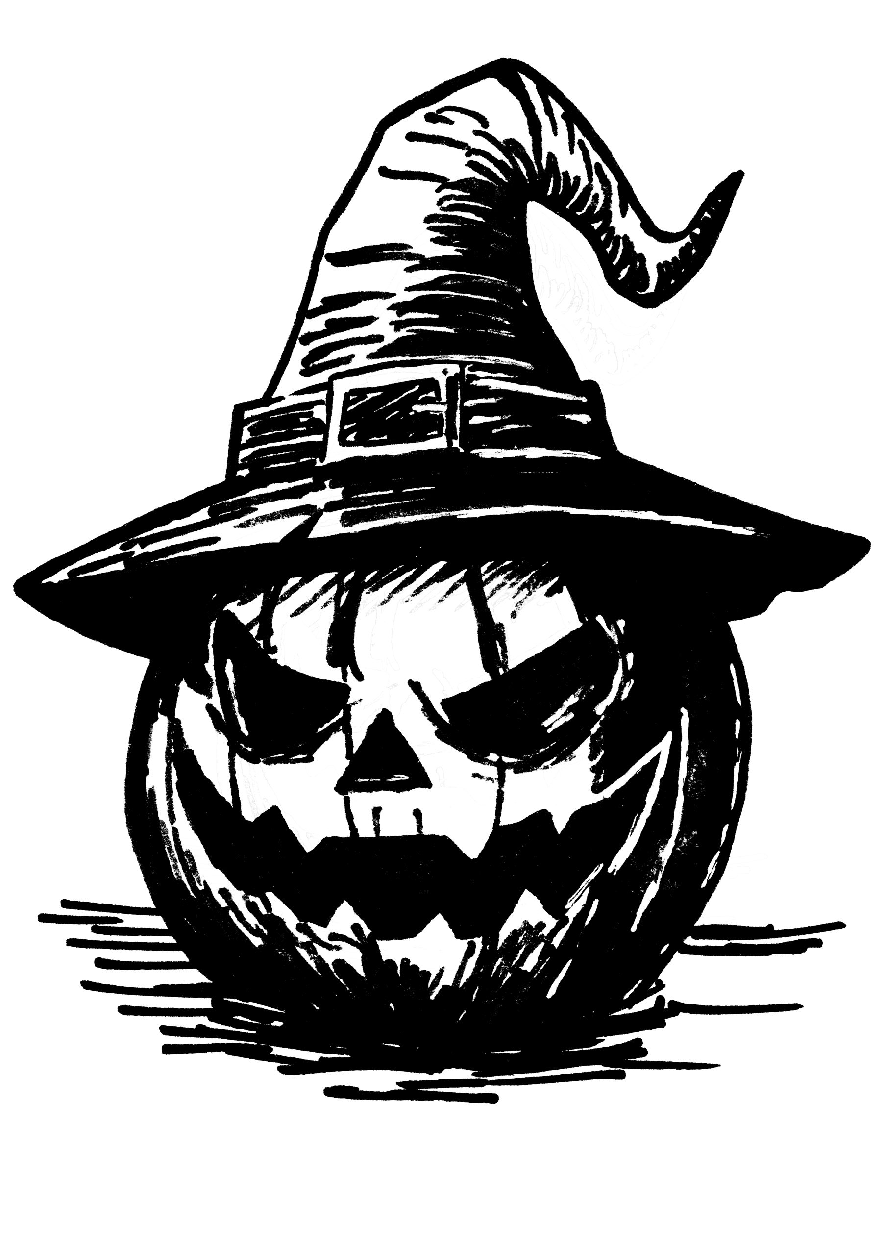 Hexenkürbis Ausmalbild (kostenlos bis Halloween)
