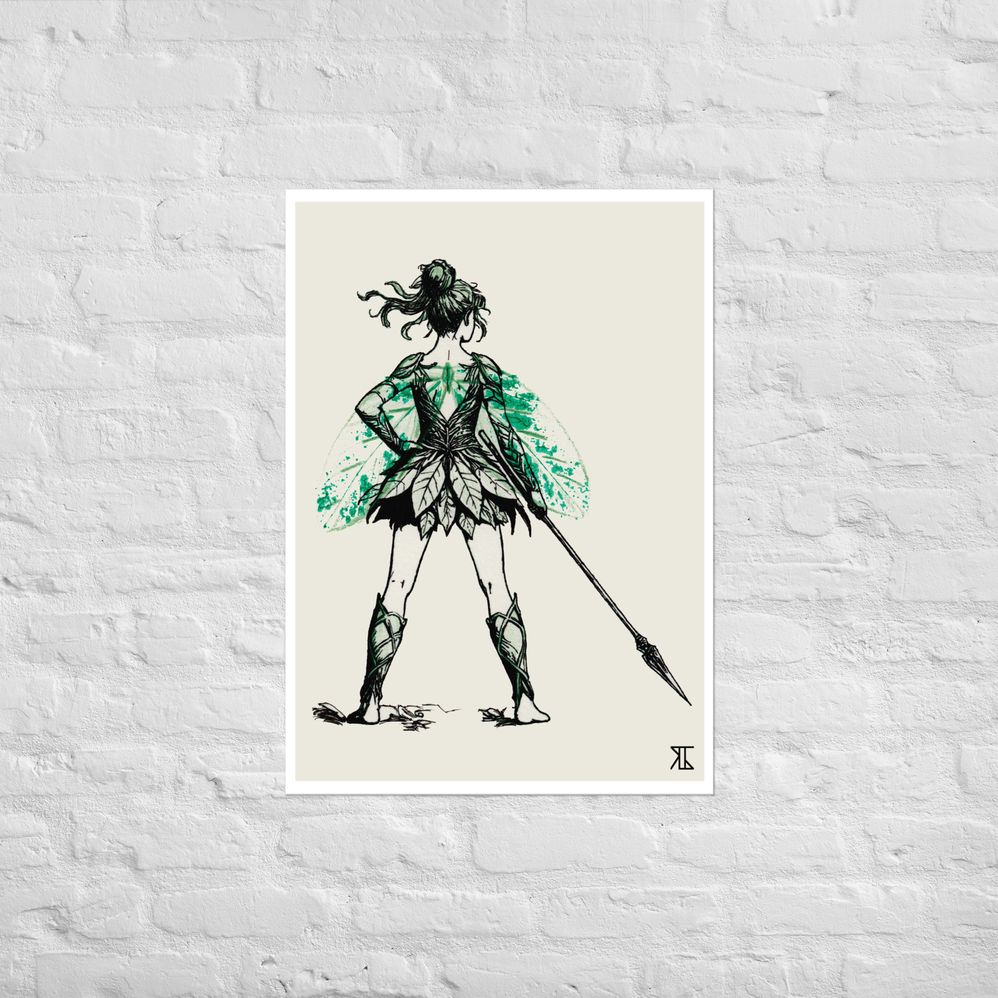 Eine Kriegerin der Feen. Das Motiv entstand daraus, das Feenvolk nicht als schwache kleine Wesen, sondern als starke selbstbestimmte Frauen darstellen zu wollen.